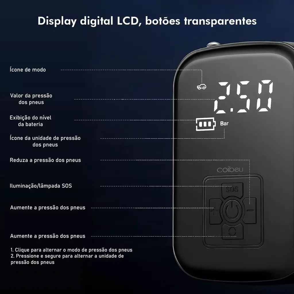 Compatibilidade: pneus de carro, moto, bicicleta, bolas, infláveis