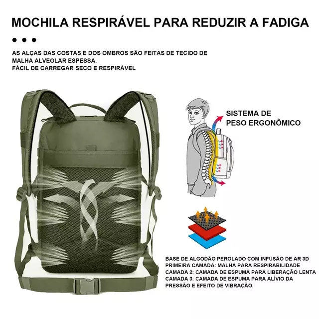 Seja para uso urbano, viagens, trilhas, camping, academia, ciclismo, pesca, caça, operações táticas ou atividades militares, esta mochila oferece resistência e praticidade para qualquer desafio.